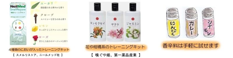 ドイツの Thomas Hummel 教授が報告した治療法で4種類のにおいを1日2回、朝と夜に15秒ずつ嗅ぐことで、嗅覚障害に有効であると言われています。